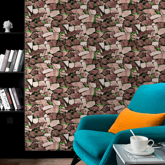 Papel Tapiz Adhesivo Efecto Piedras con Plantas Natural 10m x 45cm