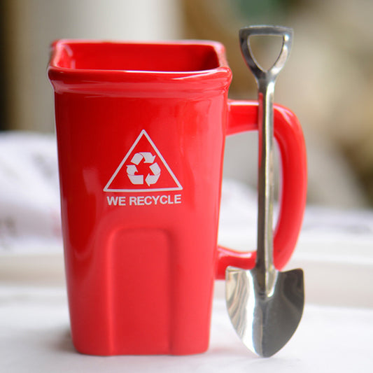 Taza de Céramica Bote Cubo Para Basura Reciclable Creativa con Cuchara en Forma de Pala