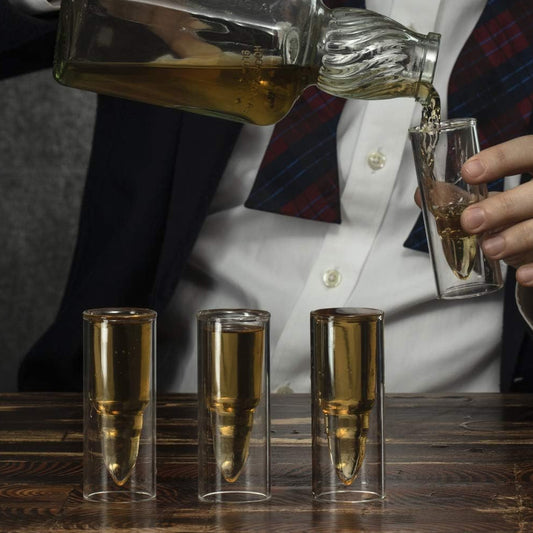Set 6 Vaso Shot en Forma de Bala de Vidrio Resistente al Calor de Doble Capa Transparente