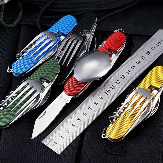 Navaja Metálica Multiusos Con 6 Funciones Diferentes Plegable y Desmontable