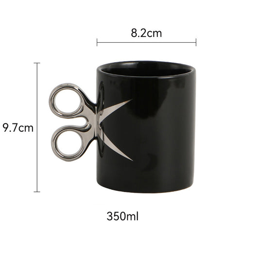 Taza de Cerámica con Mango en Forma de Tijera Barberia 350ml