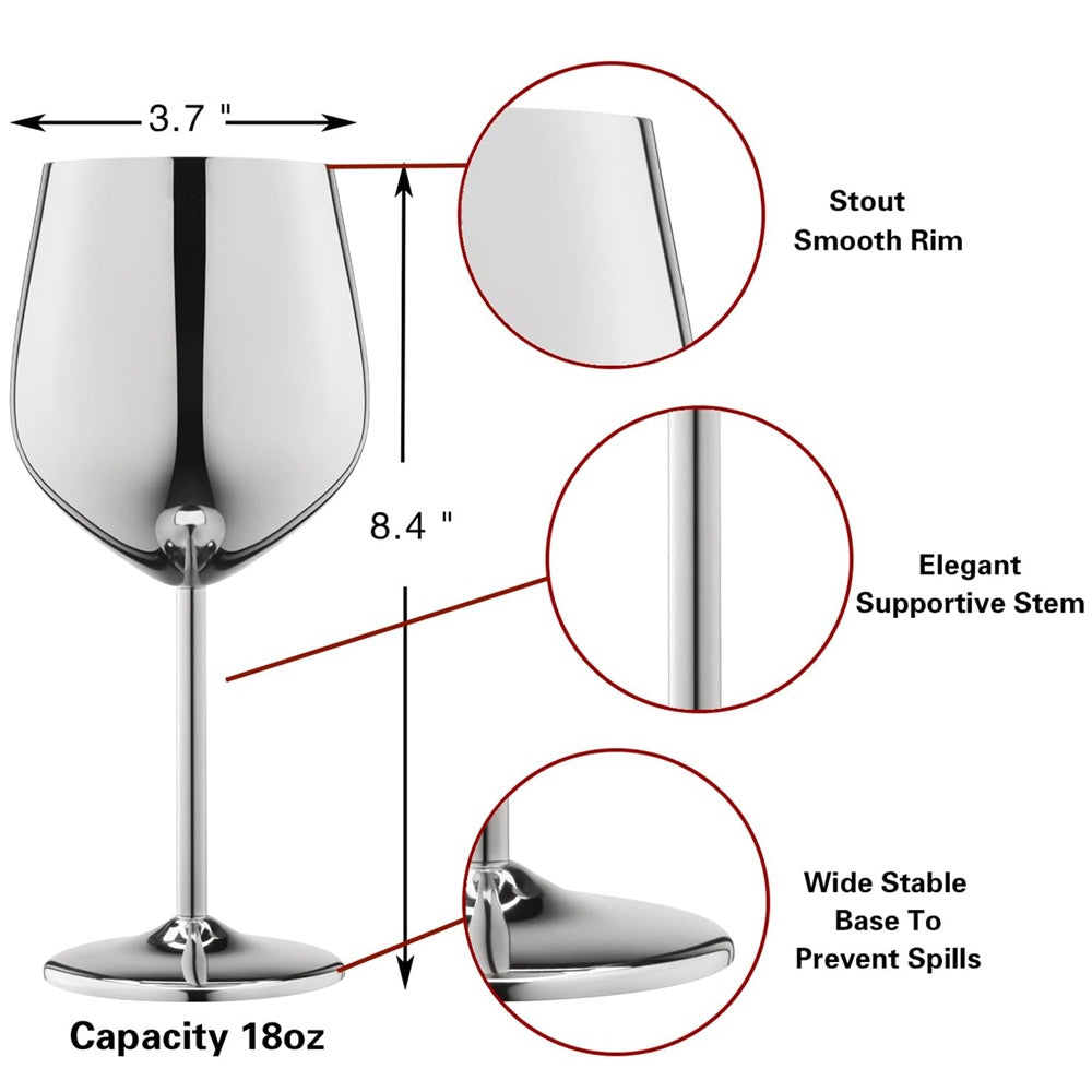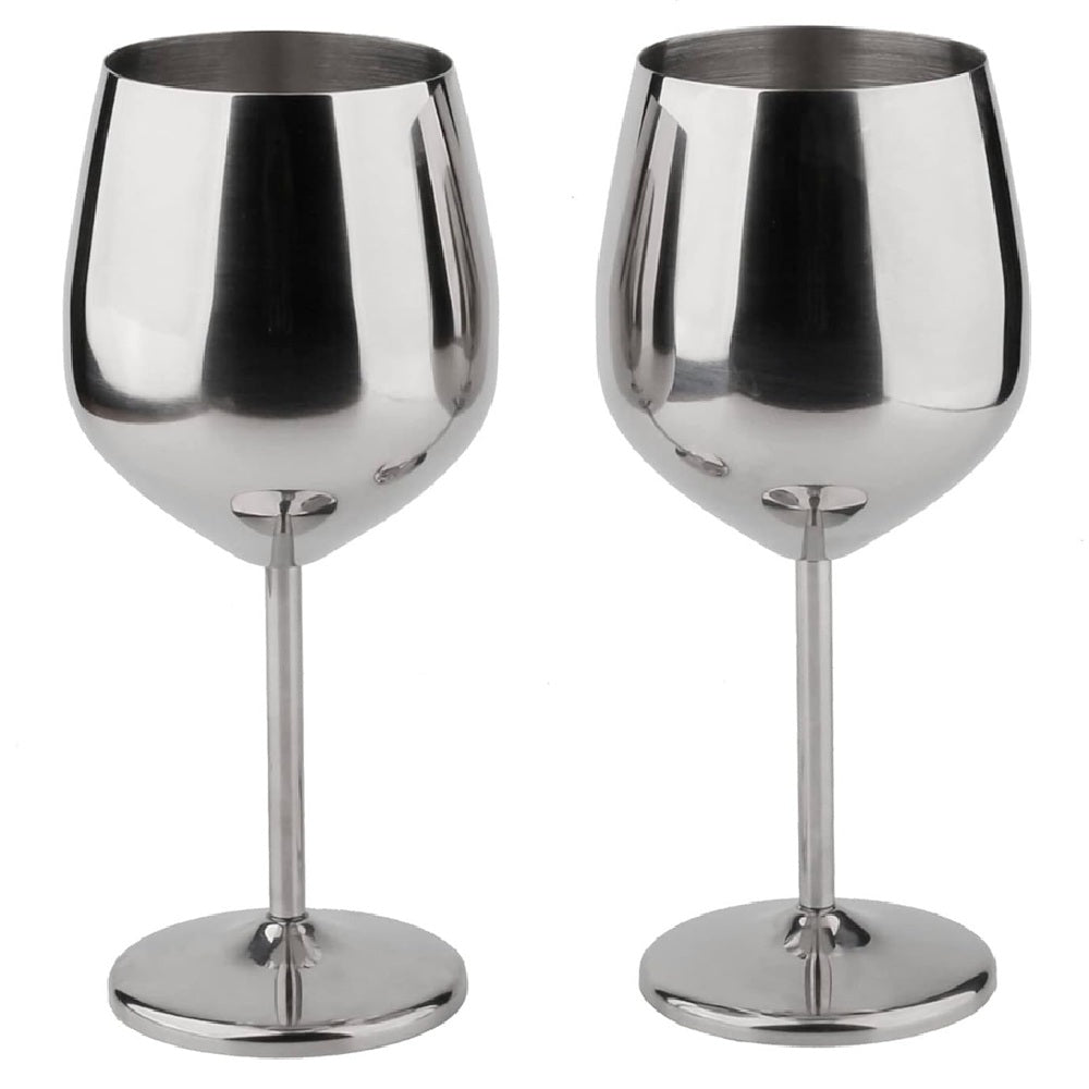 2 Copas Vino Tinto Champagne Champaña Acero Inox Elegantes 550ml Para Bar